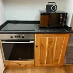 Dit appartement biedt toegang tot een gedeelde keuken met een koelkast, een oven en een kookplaat.